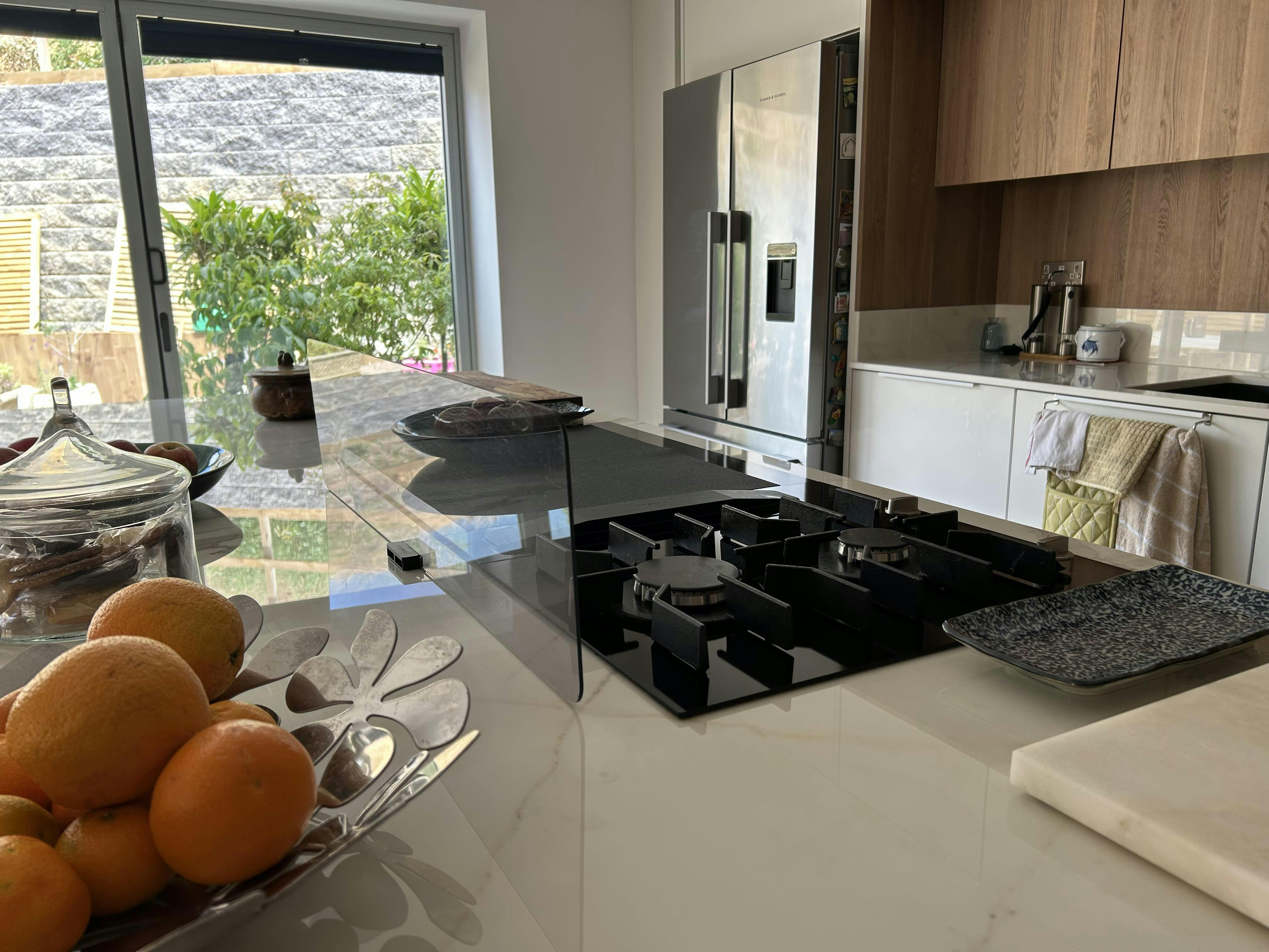 Ideaal voor ons kookeiland en heel makkelijk te plaatsen en schoon te houden. Staat tevens erg mooi.